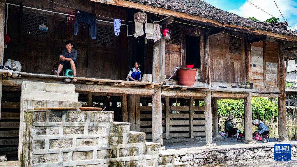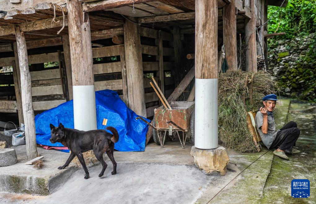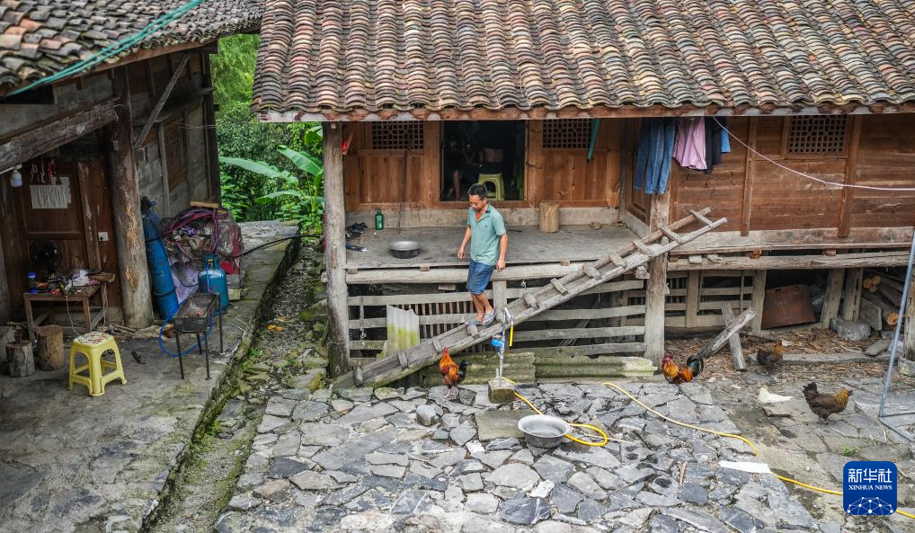 天门村村民在吊脚楼生产生活(7月16日摄)。新华社记者 陶亮 摄
