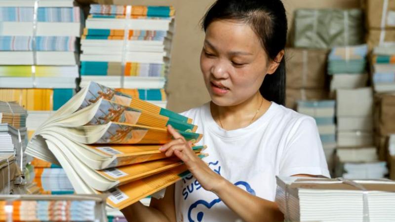 9月9日,一名网络主播用手机直播酒博会展品。新华社记者 陶亮 摄