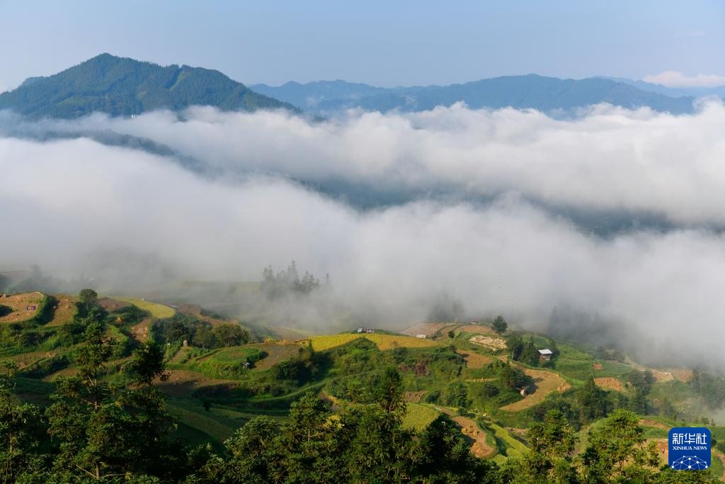 这是9月19日在贵州省黎平县尚重镇洋洞村拍摄的云海景观(无人机照片)。新华社记者 杨文斌 摄