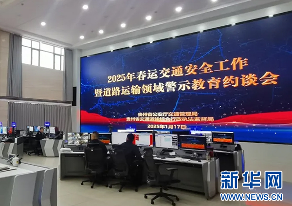 1月17日,2025年春运交通安全工作暨道路运输领域警示教育约谈视频会现场。新华网发