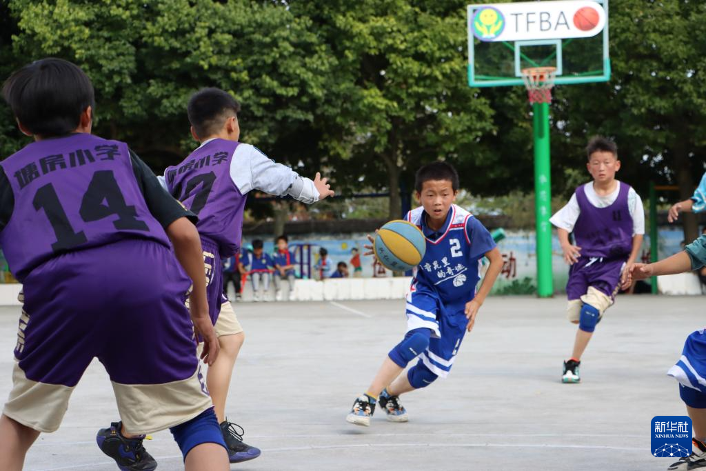 塘房小学的学生在学校举办的篮球比赛中持球进攻。新华社记者 郑明鸿 摄