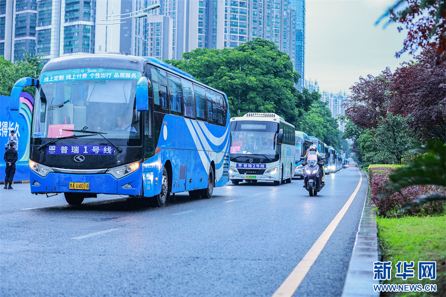 6月15日,贵阳马拉松参加者乘坐地铁离开赛场。新华网 黄勇 摄