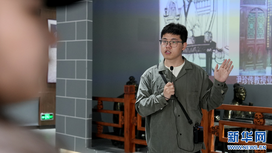 贵州师范学院大二学生蔡梦奇在贵州教育史馆作讲解。新华网 周远钢 摄
