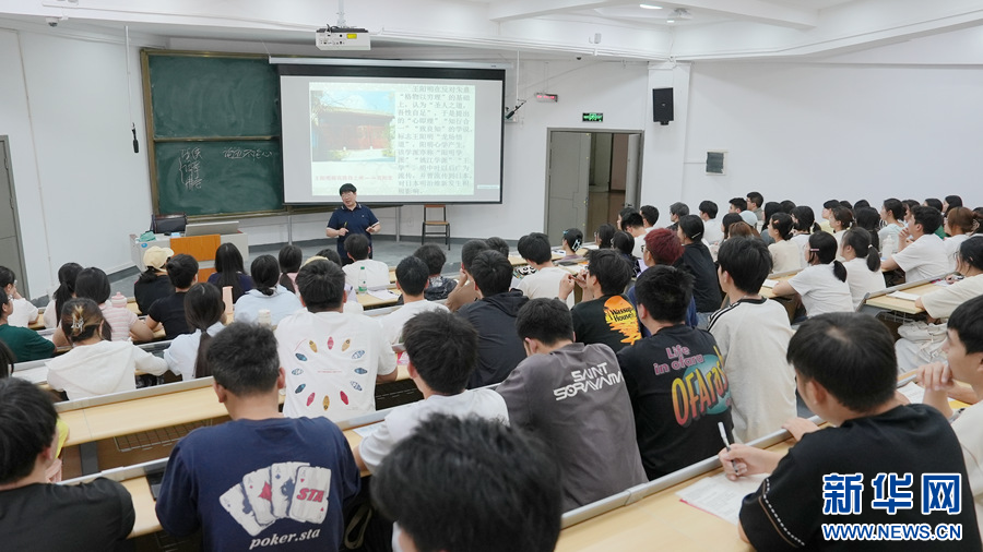 贵州师范学院《贵州教育史》课程教师黄红为学生讲课。新华网 周远钢 摄