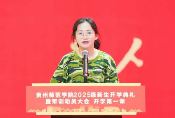 教育是一场温暖的修行,是用生命影响生命,用智慧点燃梦想。教师代表、教务处处长、创新创业学院执行院长杜宏博教授,贵阳市南明小学校长、贵州省优秀教师、优秀校友唐银乔,在校生代表、创新创业学院2022级学生段迪,新生代表、数学与大数据学院2025级李昱霏及军训教官代表、乌当区人武部朱垚睿依次发言。