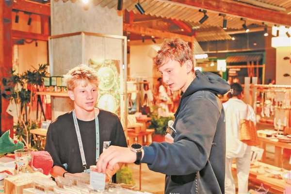 2025亚洲青年攀岩锦标赛比赛间隙,运动员在阿云朵仓选购文创产品。(赛事组委会供图)