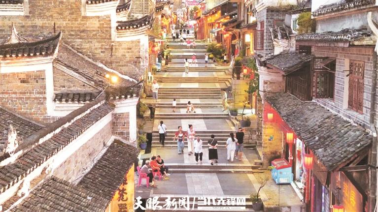 在遵义市赤水市复兴场街区,既保留着赤水传统建筑风貌和红色文化遗迹,又散发出浓浓的烟火气;以八卦形布局著称的黔西南州兴义市街心花园街区,被居民们称为“没有围墙的景区”;在贞丰县城老城区历史文化街区,“明清一条街”迎接着来自天南海北的游客……