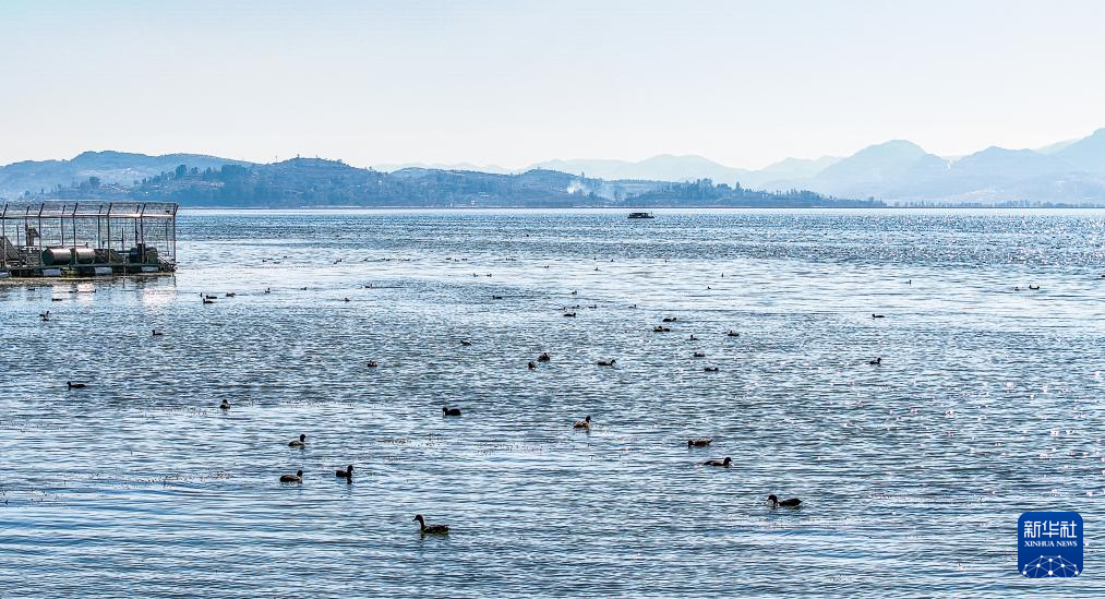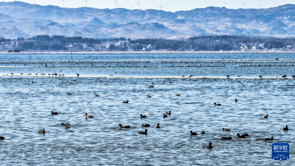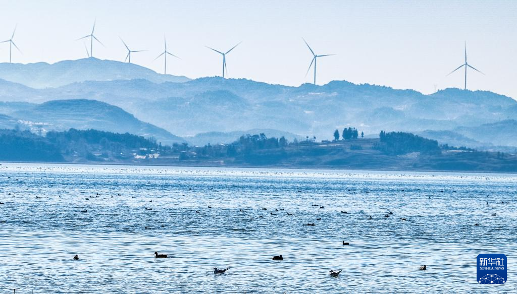 12月12日在贵州草海国家级自然保护区拍摄的越冬候鸟。新华社记者 陶亮 摄